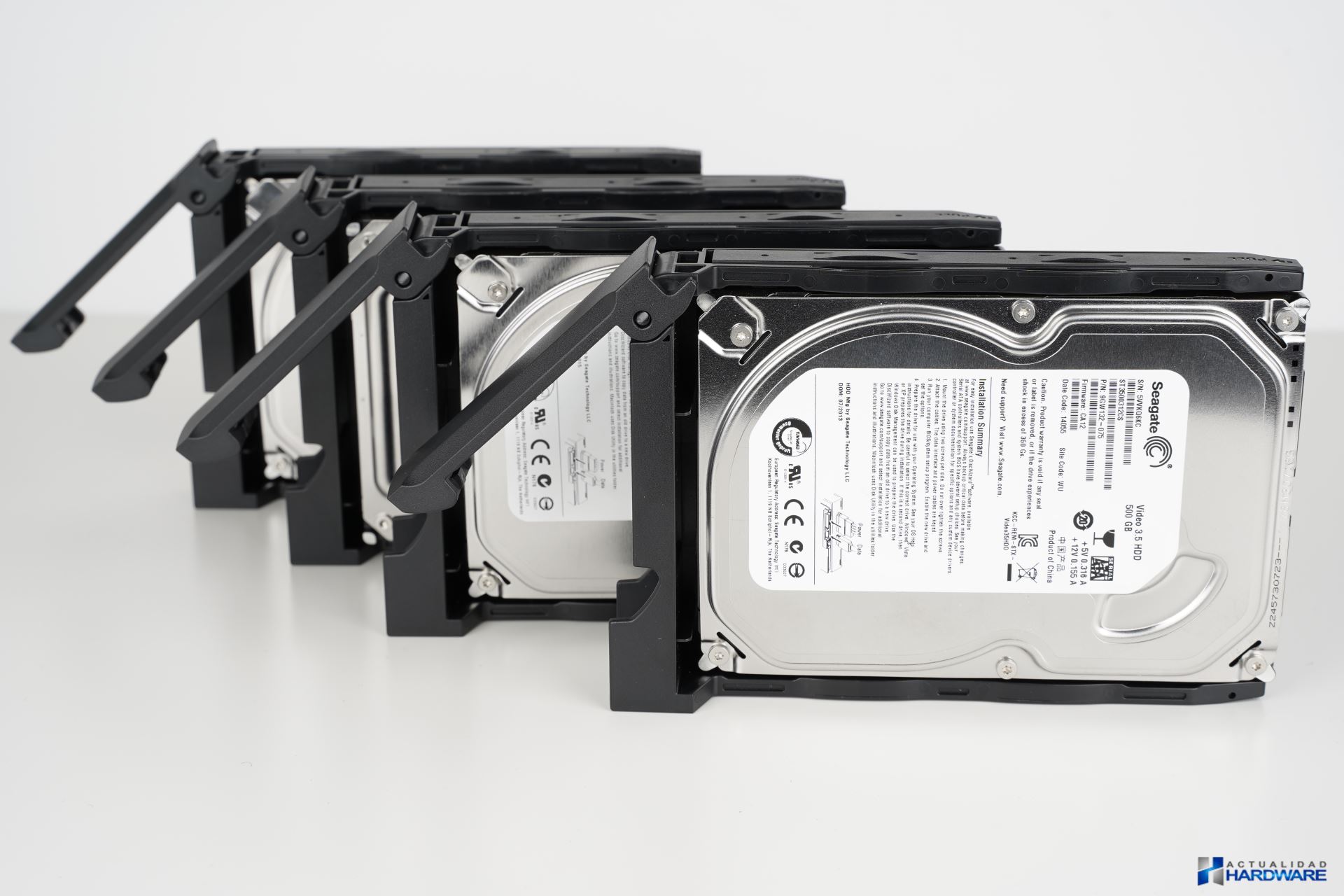 4 bahías para unidades (3.5″ SATA HDD/2.5″ SATA HDD/2.5″ SATA SSD)