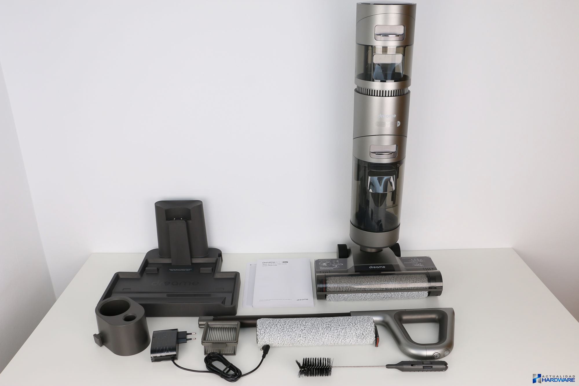 | La DREAME H11 MAX WET AND DRY VACUUM se presenta en una caja rectangular de generosas dimensiones en color negra con un diseño que bastante atractivo en la que se muestran fotos e información acerca del producto en cuestión. Una vez abierta vemos que todo se presenta perfectamente embalado, protegido y ordenado en compartimentos, una presentación muy cuidada tal y como suele ocurrir en todos los productos de la compañía. Entre los accesorios que se incluyen se encuentran los siguientes: base de carga, adaptador de corriente, cepillo limpiador, rodillo de repuesto, recipiente de accesorios, filtro de repuesto, guía de inicio rápido y manual de usuario en varios idiomas entre los que se encuentra el español. | ||||||||