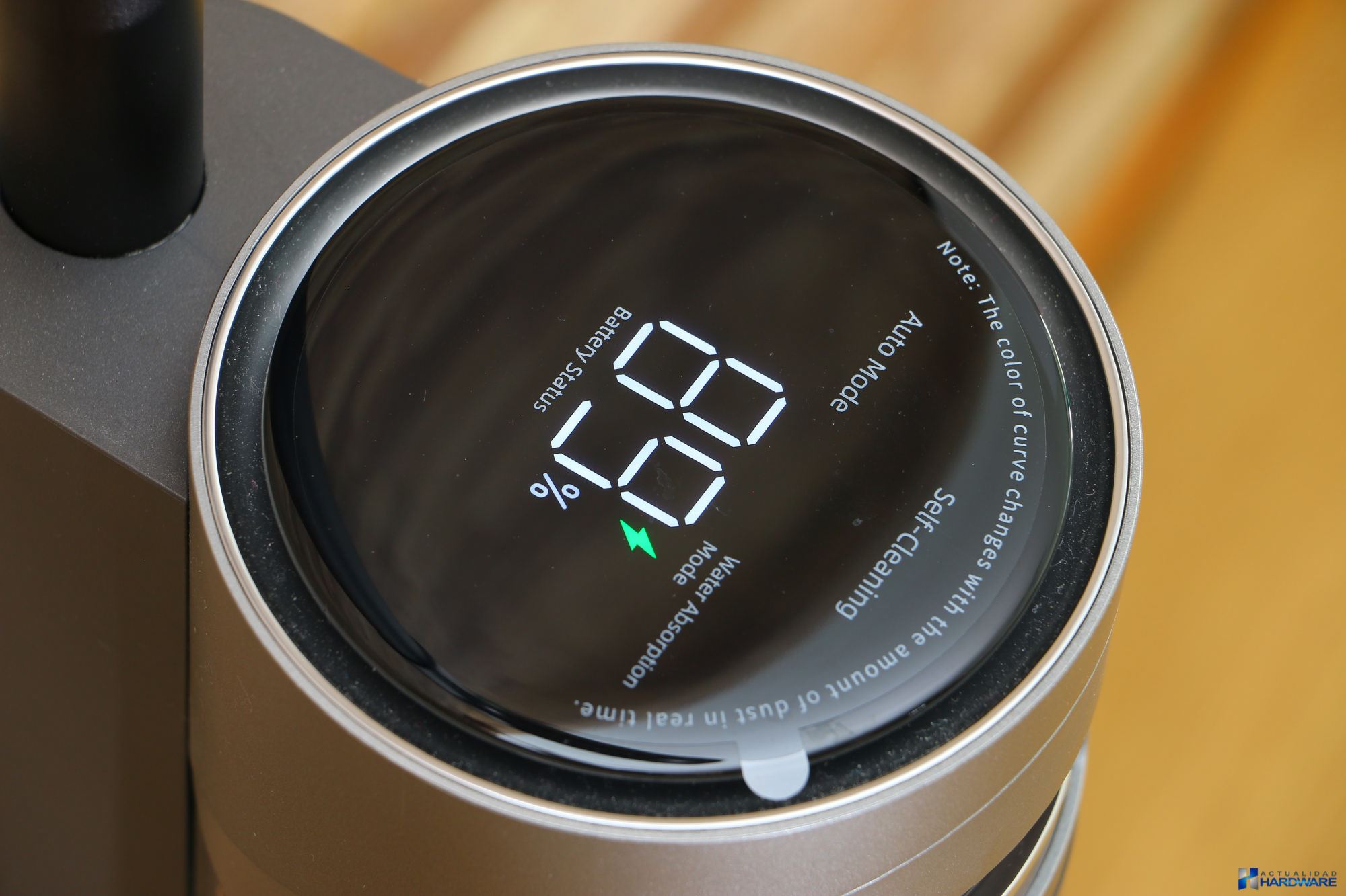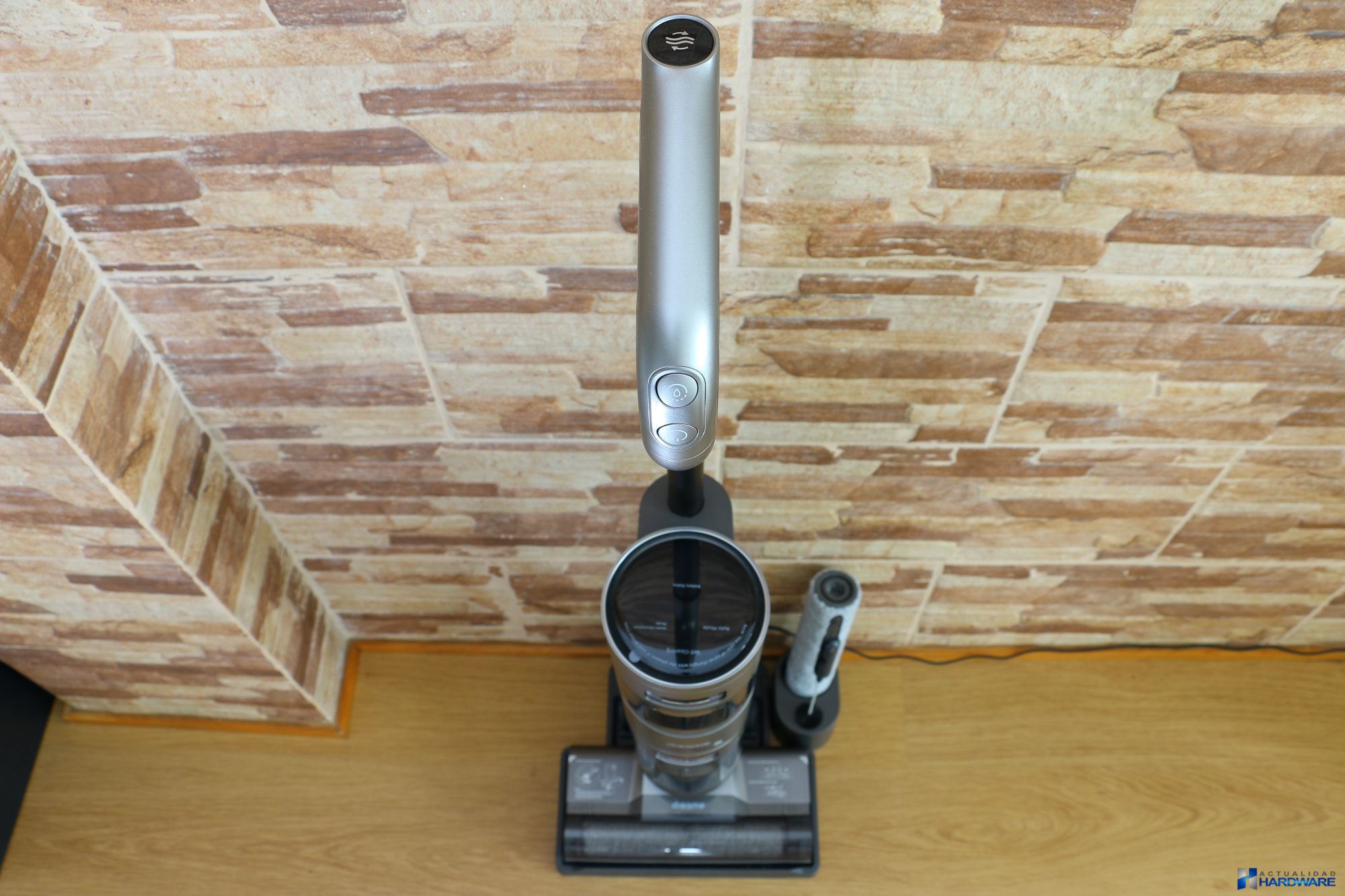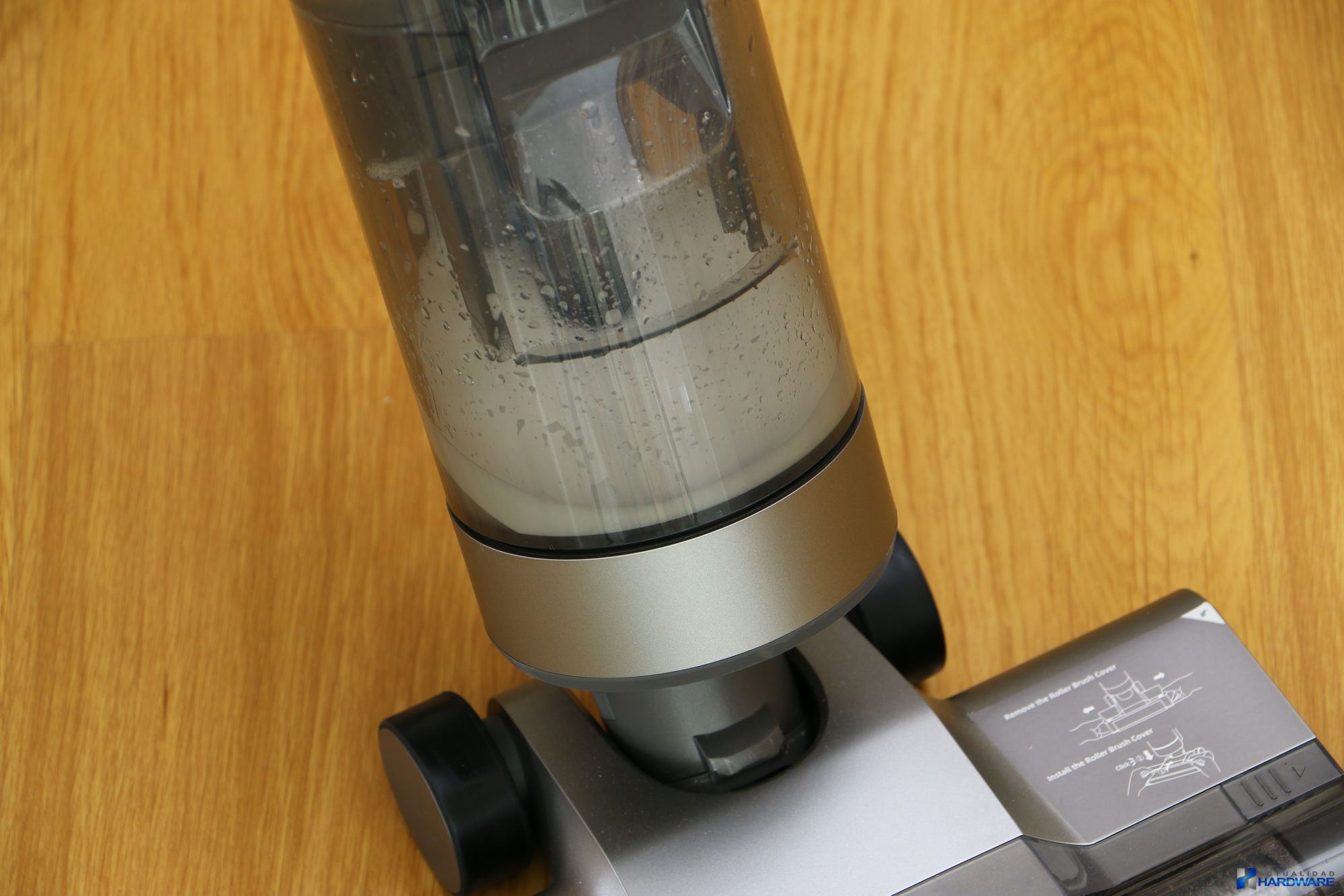 | La potencia de succión que nos ha brindado su potente motor ha sido muy buena permitiendo aspirar desde pequeños restos de polvo y comida -grano y cereales de diferentes tamaños- hasta líquidos derramados, todo ello de una manera fácil y cómoda. Lo hemos utilizado en diferentes situaciones como han sido aspirado y limpieza de suelo tanto en tarima flotante como en porcelánico, obteniendo un gran resultado. La pantalla HD a color que incluye nos ha gustado tanto en calidad de imagen como en la información que nos muestra, como es el porcentaje de batería restante, modos de limpieza o nivel de suciedad detectado, entre otros. Cuenta con tres botones en su mango como son: botón de encendido/apagado, botón de absorción de agua y botón de autolimpieza. Comentar que gracias a empuje producido al girar el rodillo, la aspiradora camina sola hacia delante, facilitando de este modo la utilización de la misma sin esfuerzo. El fabricante recomienda utilizar solamente líquido de limpieza de su marca pero nosotros para testearla hemos utilizado limpia suelos pero eso si unas pequeñas gotas ya que si abusamos en exceso podrían llegar a obstruirse los conductos, más que suficiente teniendo en cuenta el tamaño del depósito de agua que incorpora. El nivel de agua que proporciona es perfecto ya que únicamente vierte una pequeña película de agua suficiente para limpiar el suelo, no dejándolo por tanto empapado, cuestión importante si tenemos en casa tarima flotante. | ||||||||