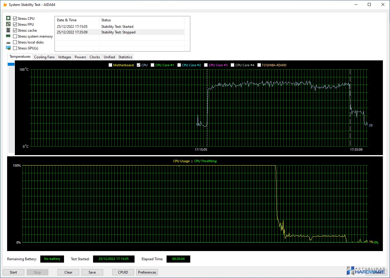 La instalación del NR24 de INWIN en nuestro equipo de pruebas de la plataforma Intel con socket LGA 1200 ha sido realmente sencilla ya que tan solo tenemos que instalar el backplate en la parte trasera de nuestra placa base y fijarlo mediante cuatro tornillos por su parte frontal. Una vez colocado el backplate ya solamente queda fijar los soportes del bloque mediante los cuatro tornillos con los que previamente hemos fijado el backplate. Indicar que antes hemos tenido que instalar los soportes en el bloque los cuales se fijan de forma manual en click. Luego deberemos atornillar los ventiladores al radiador y fijar éste en un lugar de nuestra torre. Y por último, conectaremos los conectores PWM de 4 pines de los ventiladores al adaptador/multiplicador y este a un conector para ventiladores de la placa base, mientras que el conector de la bomba de 3 pines a un conector dedicado para bombas/pump. Para testear el rendimiento del NR24 hemos utilizado la aplicación AIDA64 con su “System Stability Test”. Los resultados obtenidos han sido buenos en lo que se refiere tanto a temperaturas conseguidas tanto en reposo como a pleno rendimiento. En cuestiones de sonoridad hemos quedado satisfechos ya que la bomba es inaudible. Los ventiladores a bajas y medias revoluciones son silenciosos mientras que a pleno rendimiento se empiezan a escuchar bastante, tal y como era de esperar en relación a sus especificaciones, aún así hemos quedado también satisfechos al respecto.