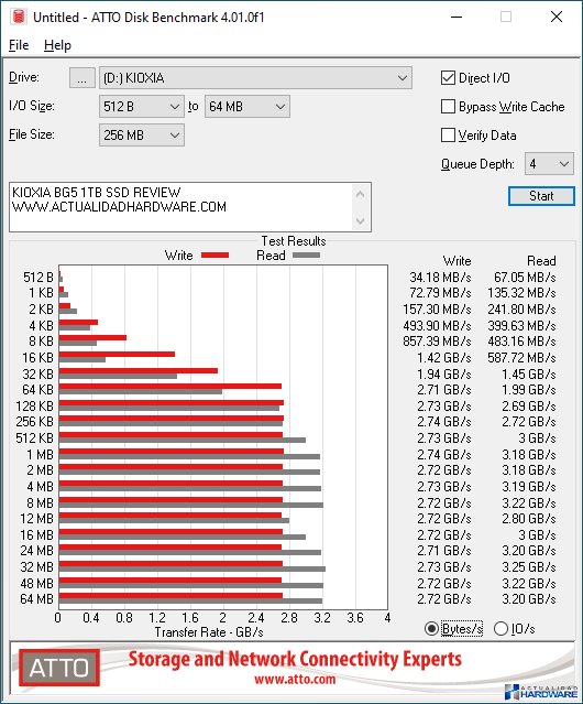| El KIOXIA BG5 NVME SSD que hemos recibido para analizarla se trata de una unidad oem para medios, es decir, no viene en un embalaje comercial tal y como lo haría si lo compramos, sino en un blister negro para muchas unidades, envíado directamente de la factoria hacía nosotros, todo ello, perfectamente embalado y protegido. El BG5 de KIOXIA es una unidad SSD NVME en formato M.2 2230 con una capacidad de 1TB estando también disponible con capacidades de 256GB y 512GB, además lo podemos encontrar en formato M.2 2280 con capacidades de 512GB y 1TB. Estas unidades de KIOXIA son de 112 capas BiCS Flash 3D TLC de 3 bits por celda en una sola cara. Cuentan con un mayor ancho de banda, una mejor gestión de la memoria Flash y la tecnología Host Memory Buffer (HMB), haciendo que las unidades SSD de la serie BG5 ofrezcan el mejor rendimiento de lectura de su clase para unidades SSD de diseño compacto en formato 2230, con niveles de hasta 3.500/2.900 MB/s en lectura/escritura secuencial y 500.000/450.000 IOPS en lectura/escritura aleatoria, un MTTF 1.500.000 horas y un consumo de energía activo de hasta 4,3W. El BG5 objeto de este review al contar con un formato 2230 sus dimensiones son de 30x20x2,23mm y su peso de 3 gramos, está considerada como la unidad más pequeña del mundo en su clase. Dispone de interfaz PCIe 4.0/NVMe 1.4 capaz de ofrecer hasta una velocidad máxima en el interfaz PCie Gen4x4 de 64 GT/s. Gracias a su reducido tamaño es adecuado para su instalación en PC ultrafinos y dispositivos compactos, tales como portátiles, dispositivos IoT integrados o unidades de arranque de servidores y matrices de almacenamiento, entre otros, siendo en estos momentos el SSD preferido para los usuarios de la Steam Deck. La serie BG5 de KIOXIA también ofrece autocifrado (SED), la cual es compatible con la versión 2.01 de TCG Opal. | ||||||||