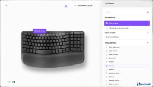 Para poder emparejar el teclado a nuestro PC hemos utilizado el receptor usb Logi Bolt ya que disponemos de bluetooth en este ordenador en concreto. Tan solo debemos encender el teclado y ya tendremos el keyboard funcionando. Para configurar el teclado y sacarle el máximo partido hemos utilizado el software LOGI OPTIONS+ de LOGITECH. Con esta aplicación podemos configurar y personalizar algunas de sus teclas, todo ello para personalizar las funciones del mismo y dejarlo a nuestro gusto que hará que mejore nuestra experiencia de uso.A través de la misma podemos monitorizar el nivel de carga de su batería además de actualizar su firmware a la última versión entre otras opciones disponibles. En LOGI OPTIONS+ podemos tener instalados todos los periféricos compatibles con ella, de esta manera tendremos a mano el poder configurarlos de una forma muy fácil. Una función muy interesante que incluye es LOGI OPTIONS+ FLOW que nos permite controlar varios ordenadores y sistemas operativos, consistente en transferir archivos entre ellos simplemente copia en uno y pegando en el otro, pudiendo alternar además entre Windows y macOS. Con SMART ACTIONS nos permite crear atajos de trabajo automatizando acciones repetitivas tal y como de macros de tratara. También podemos asignar acciones para nuestras aplicaciones más utilizadas como pueden ser Chrome, Word, Excel, Photoshop, Premiere Pro o Final Cut Pro, entre otras.