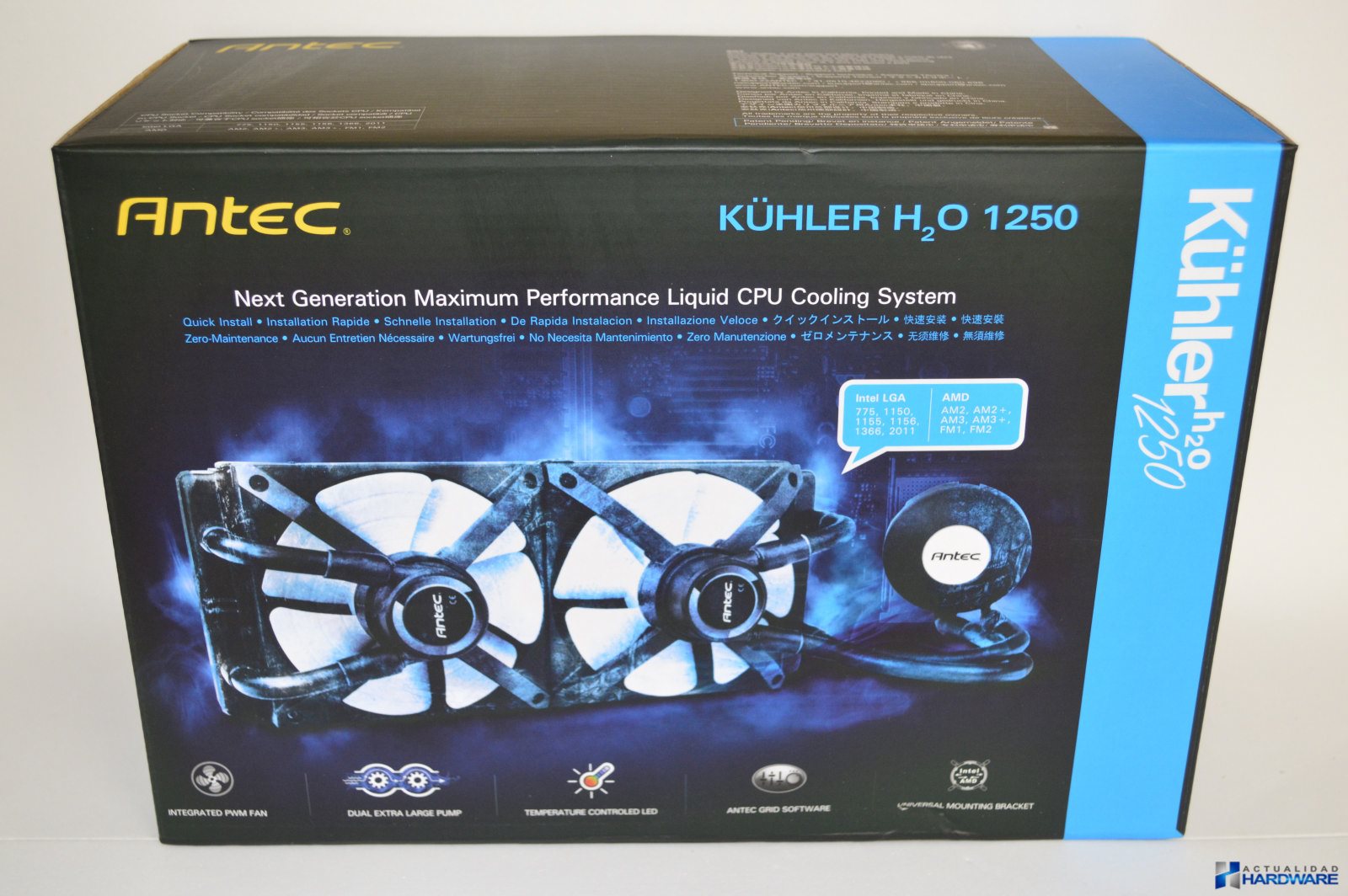 Seguimos con otro análisis de ANTECquién nos ha cedido para su review el KÜHLER H2O 1250. Se trata de un kit de refrigeración líquida sin mantenimiento que cuenta con un radiador de 240mm, bomba dual, dos ventiladores de 120mm PWM además de un bloque con iluminación LED RGB con base de cobre. Es el kit de RL más avanzado de ANTEC, al ser sin mantenimiento no tenemos que preocuparnos de nada más, solamente de su instalación que no puede ser más fácil como veremos a continuación en nuestro review.