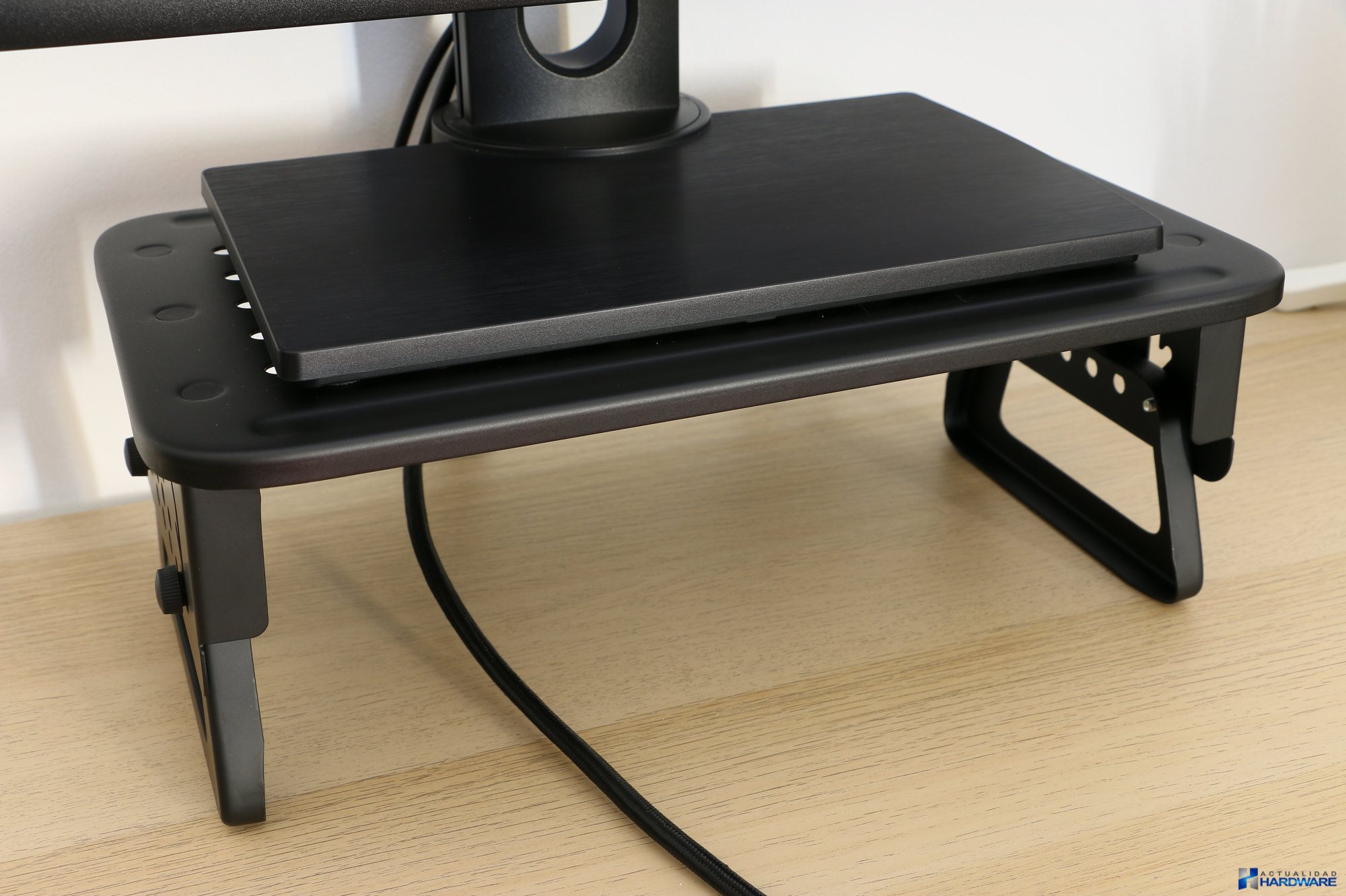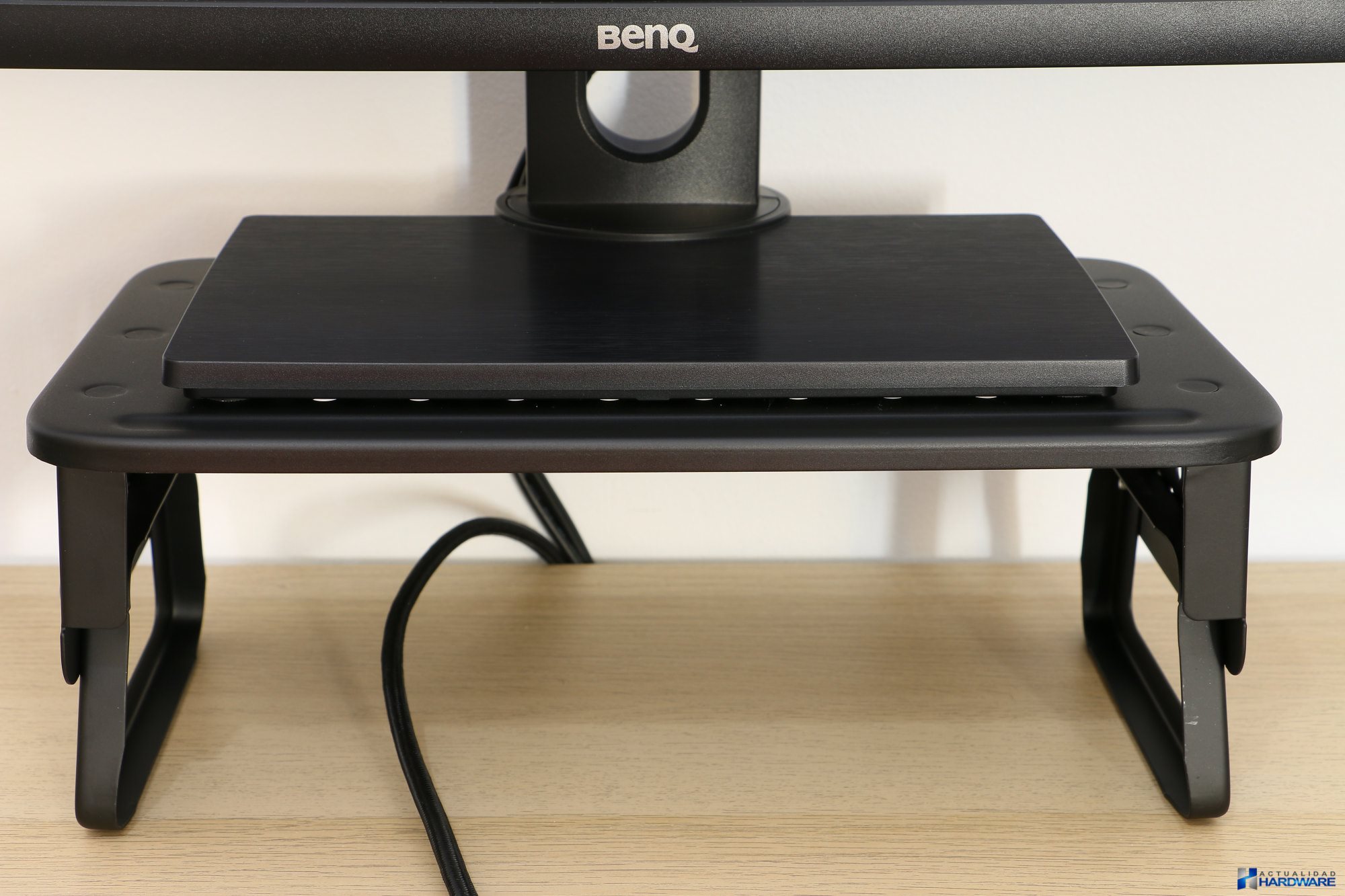 El ensamblaje del soporte ATUMTEK es sumamente sencillo que únicamente tenemos que atornillar la base a las patas para luego regular la altura deseada y fijarla mediante la tornillería incluida para ello, éste último paso podemos hacerlo sin herramientas simplemente con nuestros dedos. De las tres posiciones regulables en altura la que mejor se nos adapta personalmente es la intermedia. La ergonomía que conseguimos con este soporte es notable aunque ya este aspecto depende de cada uno de nosotros. En nuestro caso al disponer de un monitor ajustable en altura no sería necesario ningún tipo de soporte pero si vuestro monitor no dispone de ello, es muy recomendable pensar en adquirir un soporte como este. También podemos utilizarlo para colocar un portátil si lo utilizamos conectado a un monitor ya que al ser perforado el soporte, conseguiremos una mejor refrigeración. Sea cual sea el uso que le demos, será todo un acierto.
