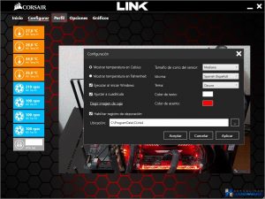 | Para testear el rendimiento del HYDRO SERIES 115i de CORSAIR, hemos utilizado la aplicación AIDA64 con su «System Stability Test» a través del cuál y tras poner nuestra sistema a pleno rendimiento podremos conocer el rendimiento del kit de refrigeración líquida objeto de nuestro review. Para ello y tras someterlo durante una hora a dicho test de estrés, ha mostrado unas muy buenas temperaturas de funcionamiento, todo ello sobre una GIGABYTE AORUS Z270X-GAMING 5, un INTEL CORE i5-7600K y unas CORSAIR VENGEANCE LED DDR4 3200MHz 32GB (4x8GB). En concreto hemos conseguido unas temperaturas en idle de 25ºC y 58ºC en full, buenísimas cifras las que ha podido conseguir, lo que nos indica que estamos ante un muy buen kit de refrigeración líquida. En cuanto a su sonoridad podemos indicar que es realmente buena, tanto la bomba como sus ventiladores. En cuanto a éstos últimos indicar que a bajas revoluciones no suenan nada, a medias suenan muy poco pero a full ya son algo más ruidosos, pero os podemos indicar que si los mantenemos a su velocidad intermedia mediante el software incluido y del que hablaremos a continuación, las temperaturas que podemos conseguir son muy buenas tal y como os hemos comentado anteriormente, donde los resultados obtenidos han sido en el rango de revoluciones medias. A través de software CORSAIR LINK podemos configurar diferentes parámetros de nuestro HYDRO SERIES 115i, el cual se organiza y divide en diferentes pestañas. En la primera de ellas denominada «Inicio», tendremos disponibles las temperaturas y revoluciones de todos los componentes de nuestro equipo, incluido lógicamente los del H115I. En «Configurar» podemos seleccionar un modelo de torre de CORSAIR o seleccionar la nuestra mediante una imagen, tal y como nosotros hemos hecho con una foto de nuestra benchtable, en este caso podemos además ubicar cada unos de los componentes y su correspondientes temperaturas/revoluciones de funcionamiento. En la pestaña «Perfil», tenemos la posibilidad de seleccionar si deseamos que el HIDRO SERIES se comporte con un rendimiento en modo «Relajado», «Equilibrado» o «Rendimiento», en nuestro caso y en las pruebas realizadas hemos seleccionado el modo por defecto «Equilibrado», que ofrece el mejor equilibrio entre rendimiento y sonoridad de funcionamiento. Además tenemos la opción de crearnos un perfil a nuestro gusto y según nuestras preferencias. En la pestaña «Opciones», podemos configurar diferentes aspectos del kit tal y como podemos ver en las imágenes. Y por último en «Gráficos», tal y como indica podemos ver en forma gráfica la evolución de las temperaturas de los diferentes componentes de nuestro PC. Un aspecto interesante y que podemos configurar es la iluminación RGB del bloque, ya que este aunque de forma predeterminada se ilumina en color blanco, podemos hacer que en función de las lecturas de temperaturas, cambie su iluminación al color que deseemos para de este modo podamos conocer en todo momento con solo mirar el bloque, la temperatura de funcionamiento que tiene nuestro equipo en cualquier momento. En definitiva un buen software para configurar y monitorizar las temperaturas de funcionamiento de nuestro equipo, todo ello de una manera fácil y con la potencia que nos ofrece la aplicación CORSAIR LINK. | ||