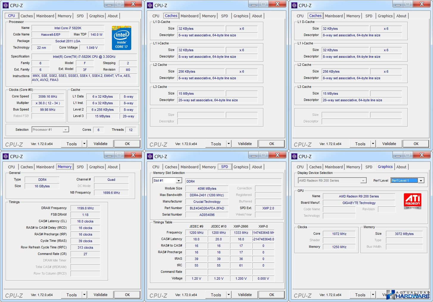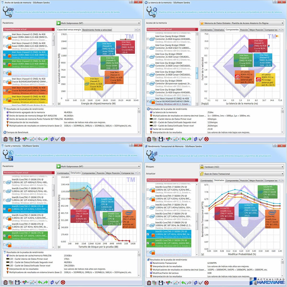 Para nuestro análisis hemos utilizado el software CPU-Z, AIDA64, SiSoftware Sandra, Cinebench y wPrime para comprobar el rendimiento del kit Quad Channel de CRUCIAL. La configuración del equipo de pruebas utilizado es la que mostramos a continuación.