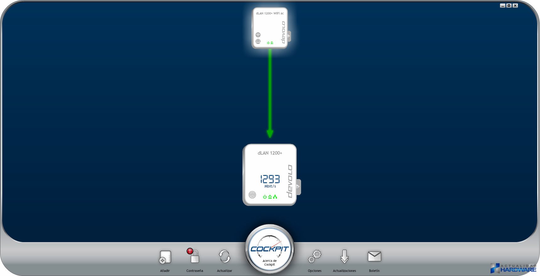 Para testear el DEVOLO DLAN 1200+ WiFi AC STARTER KIT primeramente lo hemos conectado a una misma línea de cable eléctrico para conocer hasta donde son capaces de sincronizar y os podemos comentar que la velocidad de sincronización ha sido espectacular consiguiendo más de 1200Mbit/s en ambos adaptadores. La segunda prueba ha sido conectandolos a una distancia de unos 20 metros de cableado eléctrico, hemos de decir que los enchufes son nuevos no así el cableado que debe tener aproximadamente unos 20 años, aún así la sincronización sin ser espectacular es totalmente operativa y con un buen ping. En esta ocasión hemos conseguido en ambos adaptadores una sincronización de 76Mbit/s, una cifra aceptable dado la topología de nuestra red eléctrica y a los mangetotérmicos que tenemos instalados en nuestro hogar. También lo hemos testeado a través de Wi-Fi y podemos comentar que la conexión se ha realizado sin problemas y a una buena velocidad simultáneamente en las bandas 2,4 y 5 GHz. Tenemos disponible además el denominado «Wi-Fi Clone» a través del cuál podremos ampliar la señal de nuestro router y por tanto la calidad de señal del mismo. Por tanto nos atrevemos a deciros que con estos adaptadores podríamos reemplazar a una instalación de cableado Ethernet siempre y cuando nuestra instalación eléctrica nos lo permita. No hay nada más fácil que conectarlos entre sí y que en unos pocos minutos tengamos una red totalmente operativa y funcional en la que podremos conectar nuestro PC, portátil, consola, SmartTV, SmartPhone o Tablet entre otros.