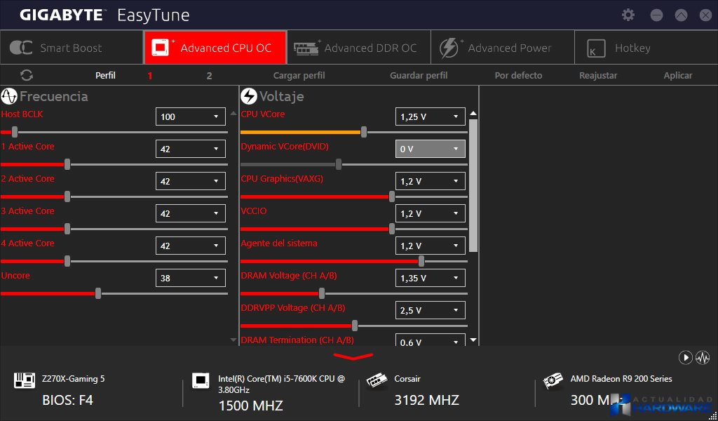 La GIGABYTE AORUS Z270X-GAMING 5 dispone de un sistema UEFI DualBIOS de AMI, todo ello con un correcto interfaz pero mejorable a nuestro gusto ya que un buen lavado de cara al diseño del mismo no le vendría mal. Gracias a ello podemos tener dos configuraciones completamente diferentes almacenadas en cada una de ellas y poder arrancar nuestro PC con una u otra según nuestras necesidades. En el video podemos ver todas y cada una de las opciones de las que dispone esta placa base y hemos de indicaros que es muy completa en cuanto a su personalización. La misma la podemos manejar a golpe de ratón, personalizable en la velocidad del mismo, algo realmente interesante, aunque seguimos prefiriendo el teclado para acceder a las diferentes opciones. Debemos comentaros que para nuestro gusto el interfaz que ofrece GIGABYTE en esta placa base es un diseño un tanto sobrio y nada espectacular, pero suficiente para la mayoría de los usuarios.
