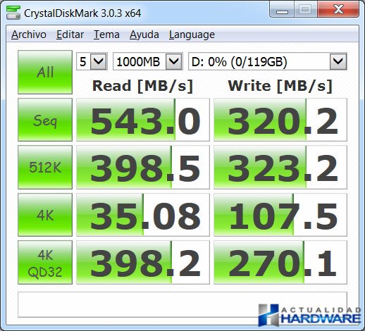 - Rendimiento de lectura de modo secuencial sostenido de hasta 545 MB/s y una velocidad de escritura secuencial de hasta 490 MB/s.
