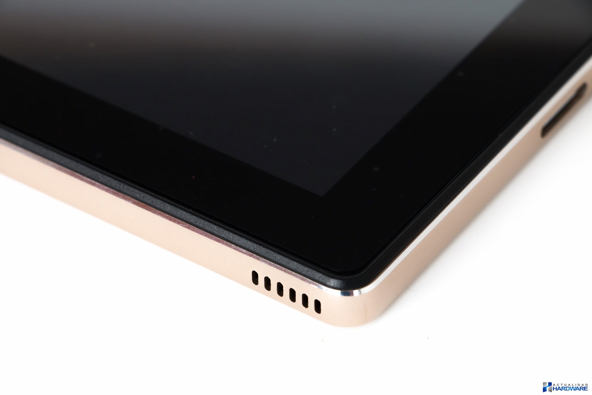 | La TECLAST TBOOK 10 se presenta en una caja de cartón de color blanca donde en su parte frontal donde lo más reseñable es el logo de «intel inside» que nos indica que el dispositivo cuenta con un procesador de dicho fabricante tal y como veremos más adelante. En su reverso nos encontramos con una etiqueta en la se muestran sus especificaciones que veremos a continuación. Una vez abierto su embalaje vemos que todo se presenta perfectamente embalado y protegido, algo realmente importante para que el producto llegue en perfectas condiciones al usuario final. La tablet lo hace dentro de una bolsa de plástico mientras que los accesorios en un compartimento lateral, encontrándose entre ellos los siguientes: manuales de usuario tanto para Windows como para Android en idiomas chino e inglés, tarjeta de garantía, adaptador de corriente con adaptador para enchufes EU, cable micro-USB a USB y cable OTG USB. Una vez tenemos la TECLAST TBOOK 10 en nuestra mesa de trabajo, vemos que se trata de una Tablet que cuenta con un buen diseño, construcción y ensamblaje. La misma se encuentra fabricada en su parte trasera en metal de color champán que le proporciona un gran aspecto así como robustez a la misma. Cuenta con unas dimensiones de 250 x 165 x 8mm y un peso de 583 gramos, considerándola como una Tablet compacta en relación al tamaño de su pantalla en la que han podido reducir el tamaño de sus marcos en comparación con otros modelos del mercado actual. Entre sus características más reseñables indicar que la misma cuenta con una pantalla IPS de 10.1 pulgadas con resolución FullHD de 1920×1200 además de una CPU Intel Cherry Trail Z8300 Quad Core de 64bits de 1.44 hasta los 1.84GHz con un proceso de fabricación de 14nm, una GPU Intel HD Graphics Gen8, 4GB de RAM DDR3L y 64GB de ROM eMMC ampliable con hasta 128GB mediante tarjeta micro-SD, entre otras que iremos viendo a lo largo del review. | ||||||||