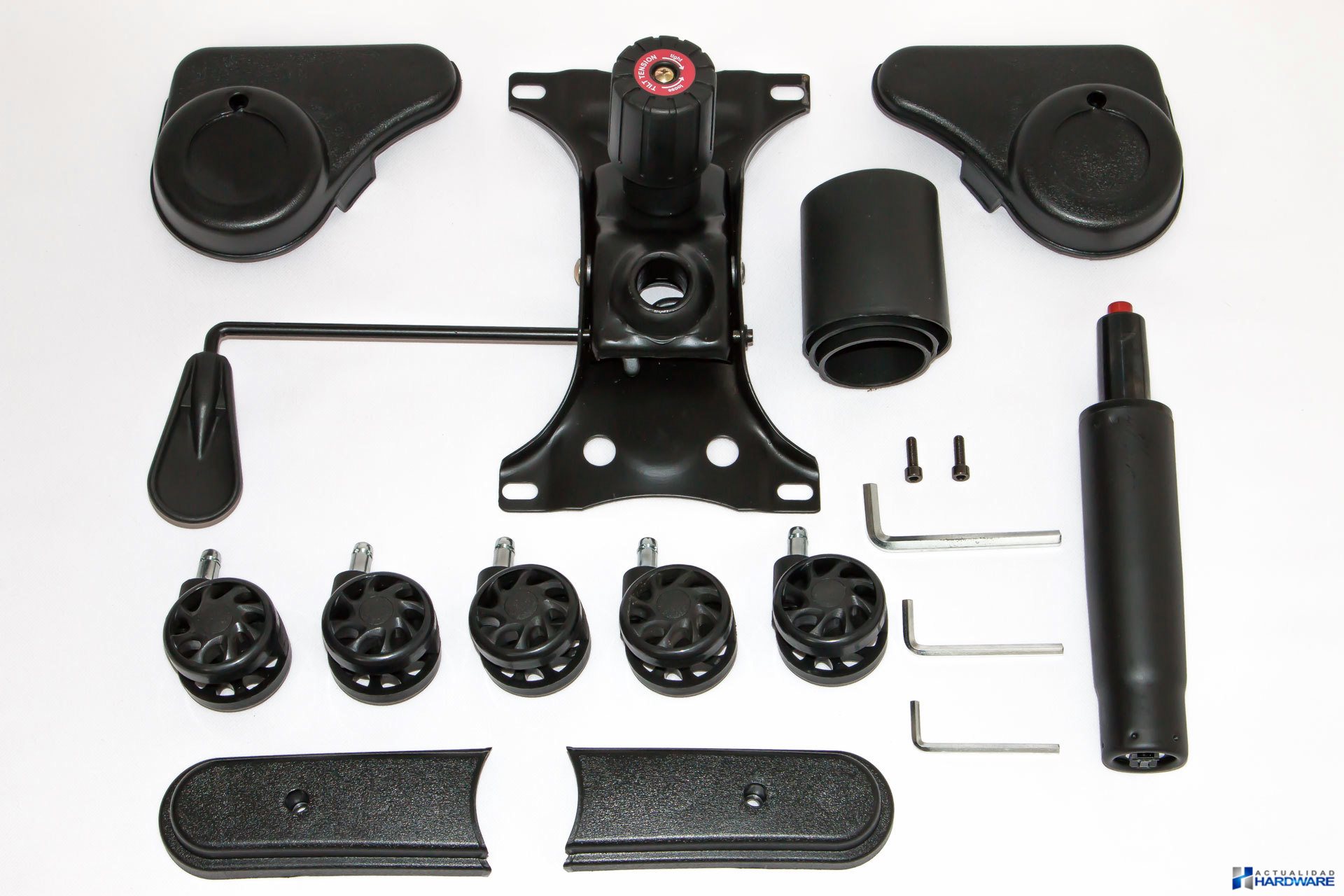 La SL5000 viene desmontada en diferentes partes como podemos ver en las imágenes, siendo las mismas: respaldo, asiento con reposabrazos, base y cojines, tanto cervical como lumbar. Ambos se presentan bordados con hilo negro, el primero de ellos cuenta con el logo del fabricante y el segundo con la palabra «VERTAGEAR», éste último incluye una apertura con cierre de belcro con la posibilidad de acceder a su interior y de retirar su relleno de goma-espuma. El peso de la silla una vez montada es de 20Kg. Su montaje es realmente sencillo gracias a la guía de usuario en formato papel que la misma incluye y que podemos visualizar en vídeo a continuación. Se encuentra fabricada exteriormente en cuero PVC de alta calidad de color negro que le aporta un gran aspecto a la silla a la vez que una gran durabilidady comodidad a la misma. Comenzando por el respaldo podemos decir que el mismo cuenta con un diseño Gaming al igual que el resto de la silla. En el reposacabezas cuenta con «VERTAGEAR» bordado con hilo negro además de dos orificios a la altura de los hombros con embellecedores de plástico, tal y como si fuera un «baquet» de competición. La calidad de construcción, ensamblaje así como las costuras son de gran calidad. El asiento al igual que el resto de la silla está construido del mismo material, es decir, de cuero PVC. Los reposabrazos ajustables vienen fijados de serie mediante tornillería por lo que no serán necesarios ensamblarlos. Además cuenta con varias tiras elásticas y un relleno de espuma elástica condensada que le aporta gran confort a la silla cuando la utilizamos durante largos periodos de tiempo. La SL5000 se encuentra construida a partir de una estructura de acero y base de aluminio en forma de estrella de cinco brazos que le aporta gran solidez.